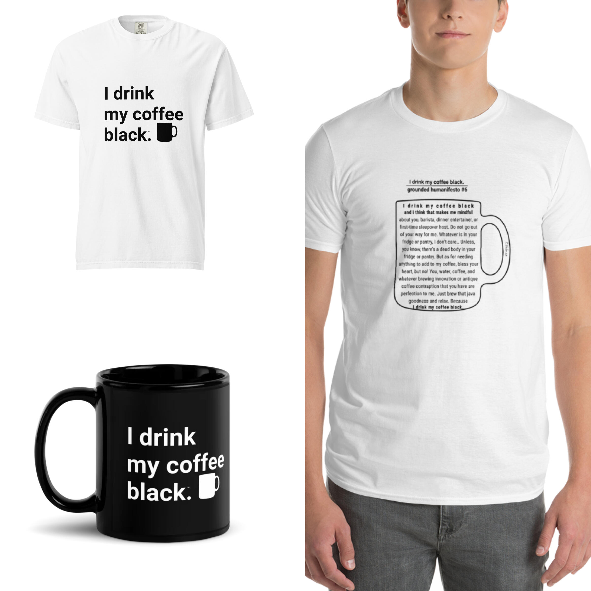 Now that you've (hopefully) read the book, wear and share the black coffee grounded humanifestos with the others.