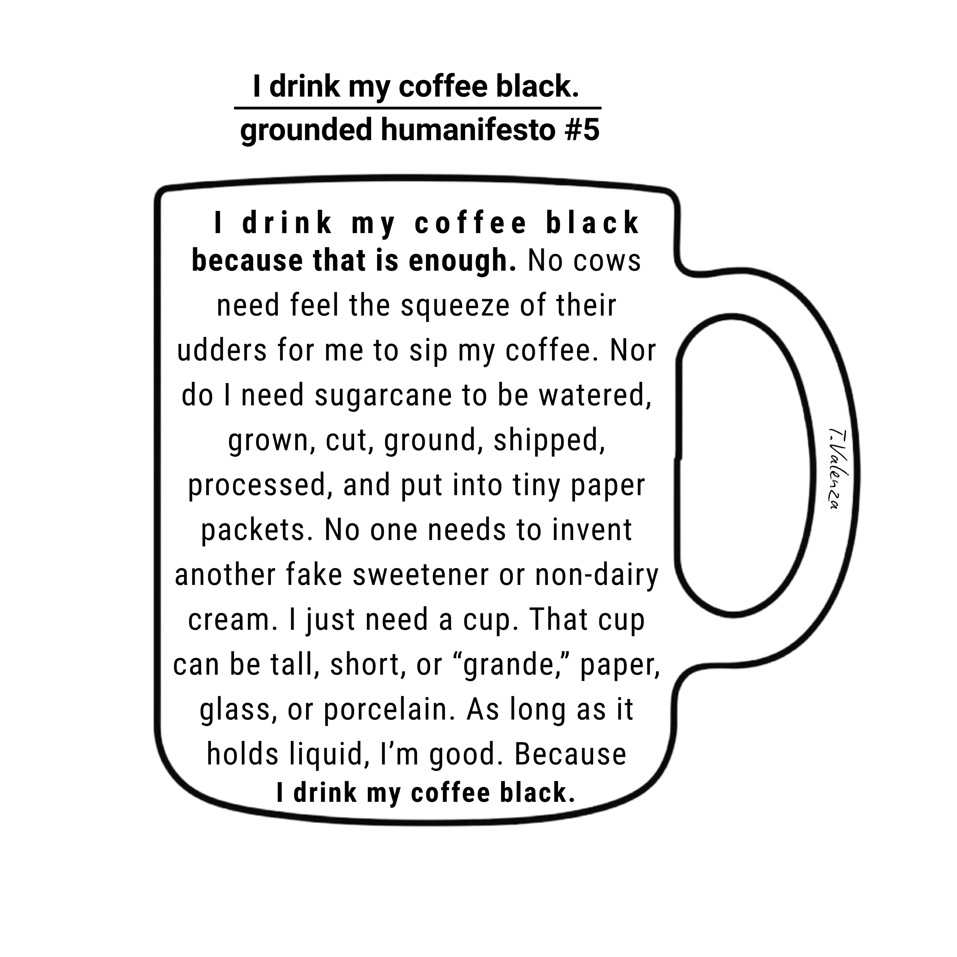 T. Valenza drinks his coffee black. If you read the book, that's pretty much all you need to know.
